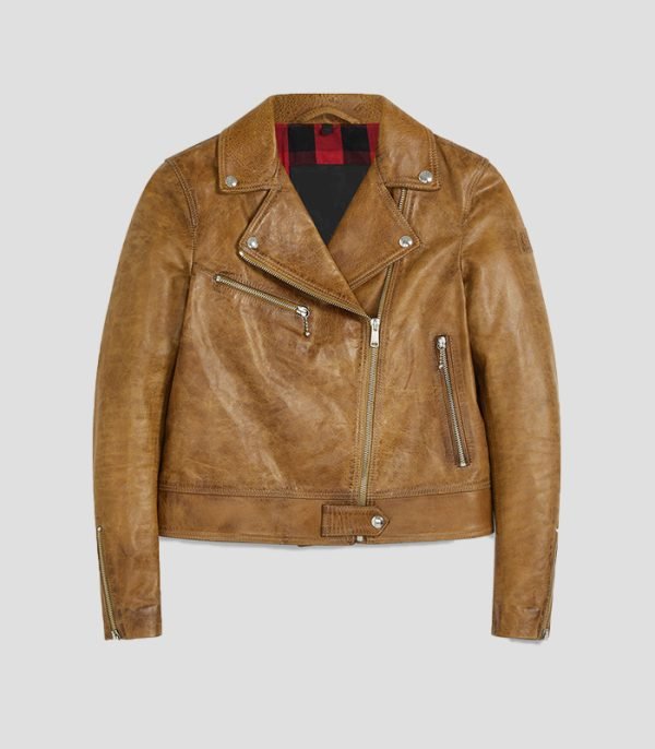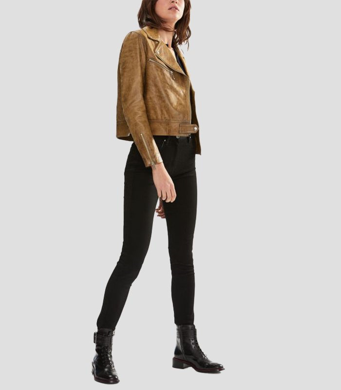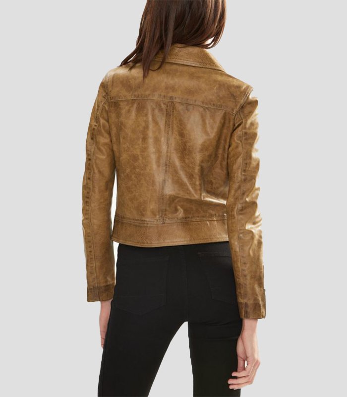 Women Pure Light Brown Leather Jacket
