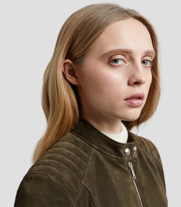 Women Pure Light Green Leather Jacket