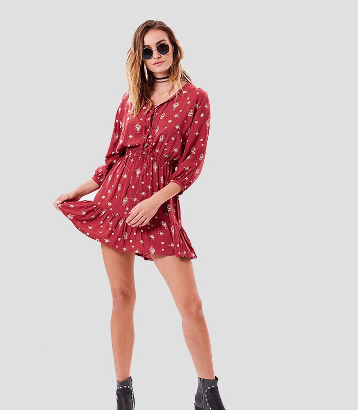 Women Red Floral Skirt Dress